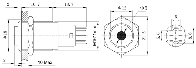 系列商品:FT16按钮开关 模型号:FT16Q-C13 订单型号:FT16QB-H11Z/D 安装孔径:Φ16mm 头部形状:高平头 点带灯 开关结构:1NO1NC / 2NO2NC 操作类型:复位 / 自锁 尾部配置:引脚式 开关规格:3A 250VAC 防护等级:IP65 / IP67 灯珠颜色:红 黄 绿 蓝 白 (可定制其他颜色) 灯珠电压:2V 3V 5V 6V 12V 24V 36V 48V 灯珠电压:110V 220V (大于48V时需接外接电阻) 灯珠电流:15mA(≤48V);2mA(≥110V)