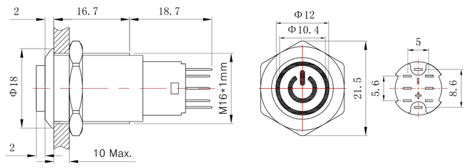 系列商品:FT16按钮开关 模型号:FT16Q-C35 订单型号:FT16QB-H11Z/EV 安装孔径:Φ16mm 头部形状:高平头 环形+电源符号灯 开关结构:1NO1NC / 2NO2NC 操作类型:复位 / 自锁 尾部配置:引脚式 开关规格:3A 250VAC 防护等级:IP65 / IP67 灯珠颜色:红 黄 绿 蓝 白 (可定制其他颜色) 灯珠电压:2V 3V 5V 6V 12V 24V 36V 48V 灯珠电压:110V 220V (大于48V时需接外接电阻) 灯珠电流:15mA(≤48V);2mA(≥110V)