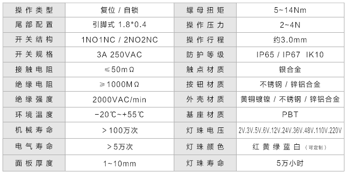 开关规格: