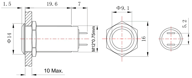 平头 复位/自锁 无灯 引脚式
