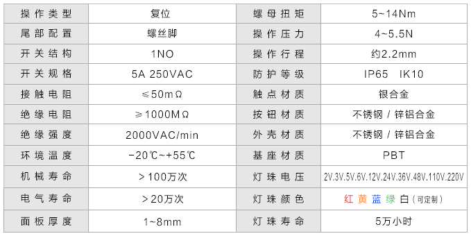 平头 复位 环形灯 螺丝脚