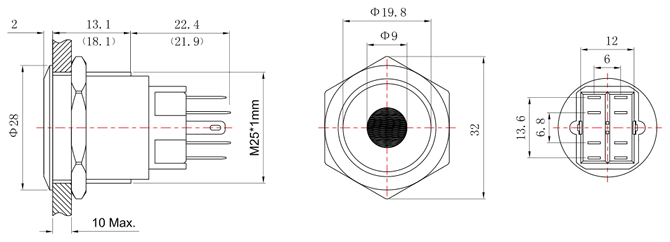 系列商品:FT25按钮开关 模型号:FT25Q-Y6/Y1Z 订单型号:FT25QA-F11Z/D 安装孔径:Φ25mm 头部形状:平头 点带灯 开关结构:1NO1NC / 2NO2NC 操作类型:复位 / 自锁 尾部配置:引脚式 开关规格:5A 250VAC 防护等级:IP65 / IP67 灯珠颜色:红 黄 绿 蓝 白 (可定制其他颜色) 灯珠电压:2V 3V 5V 6V 12V 24V 36V 48V 灯珠电压:110V 220V 灯珠电流:15mA(≤48V);2mA(≥110V)