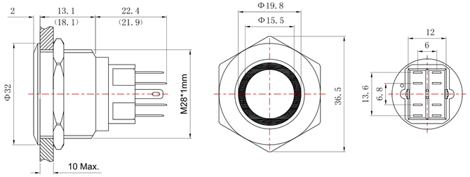 系列商品:FT28按钮开关 模型号:FT28Q-G7/G2Z 订单型号:FT28QA-F11Z/E 安装孔径:Φ28mm 头部形状:平头 环形灯 开关结构:1NO1NC / 2NO2NC 操作类型:复位 / 自锁 尾部配置:引脚式 开关规格:5A 250VAC 防护等级:IP65 / IP67 灯珠颜色:红 黄 绿 蓝 白 (可定制其他颜色) 灯珠电压:2V 3V 5V 6V 12V 24V 36V 48V 灯珠电压:110V 220V 灯珠电流:15mA(≤48V);2mA(≥110V)