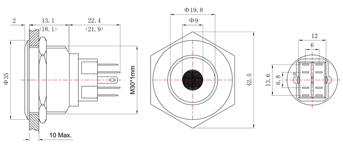 系列商品:FT30按钮开关 模型号:FT30Q-L6/L1Z 订单型号:FT30QA-F11Z/D 安装孔径:Φ30mm 头部形状:平头 点带灯 开关结构:1NO1NC / 2NO2NC 操作类型:复位 / 自锁 尾部配置:引脚式 开关规格:5A 250VAC 防护等级:IP65 / IP67 灯珠颜色:红 黄 绿 蓝 白 (可定制其他颜色) 灯珠电压:2V 3V 5V 6V 12V 24V 36V 48V 灯珠电压:110V 220V 灯珠电流:15mA(≤48V);2mA(≥110V)