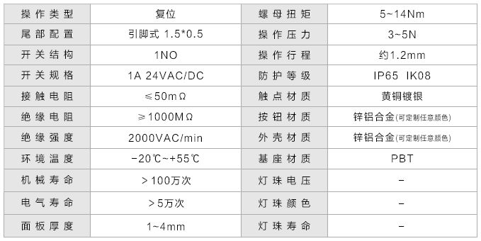 开关规格: