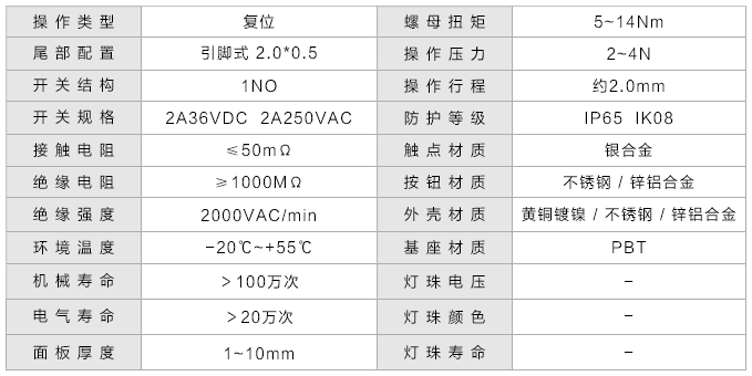 开关规格: