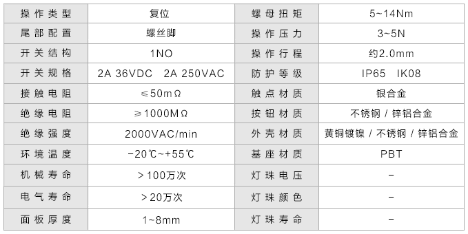 开关规格: